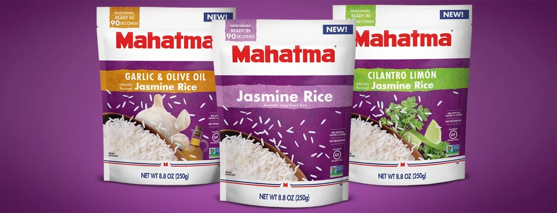 WFM helped identify the right visual strategy for each offering and how the new innovations would relate to each other within the core Mahatma offerings that consumers know and love. Designs were driven by understanding the audience and how these products would be used in context. Ready to serve, while introducing a convenient form to the traditionally long cooking Mahatma product, was also about delivering on just the right amount of lightly seasoned flavor. The designs were flavor forward, differentiating from the pack architecture of the traditional offerings, with a more dynamic layout conveying speed and driving appetite appeal.